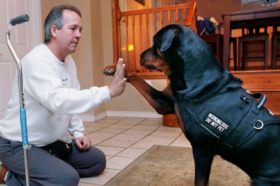 Its small size may have you think this dog isn't a good choice for a service animal, but don't let its stature fool you. The Pomeranian can be easily trained to alert owners of impending effects brought on by chronic medical illnesses. This breed is also being used to aid people who are hard of hearing, alerting them to sirens, fire alarms, and door bells.7. Saint Bernard
