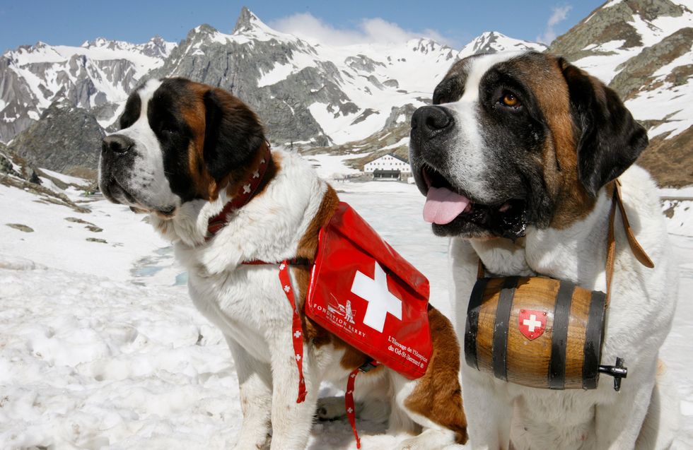 The Saint Bernard is one of the most well-known service dog breeds. He puts his natural protectiveinstincts and patient attitude to work as a search and rescue dog on the ski slopes and is often called upon to help the wounded after an avalanche or backpackers lost on a snowy trail.