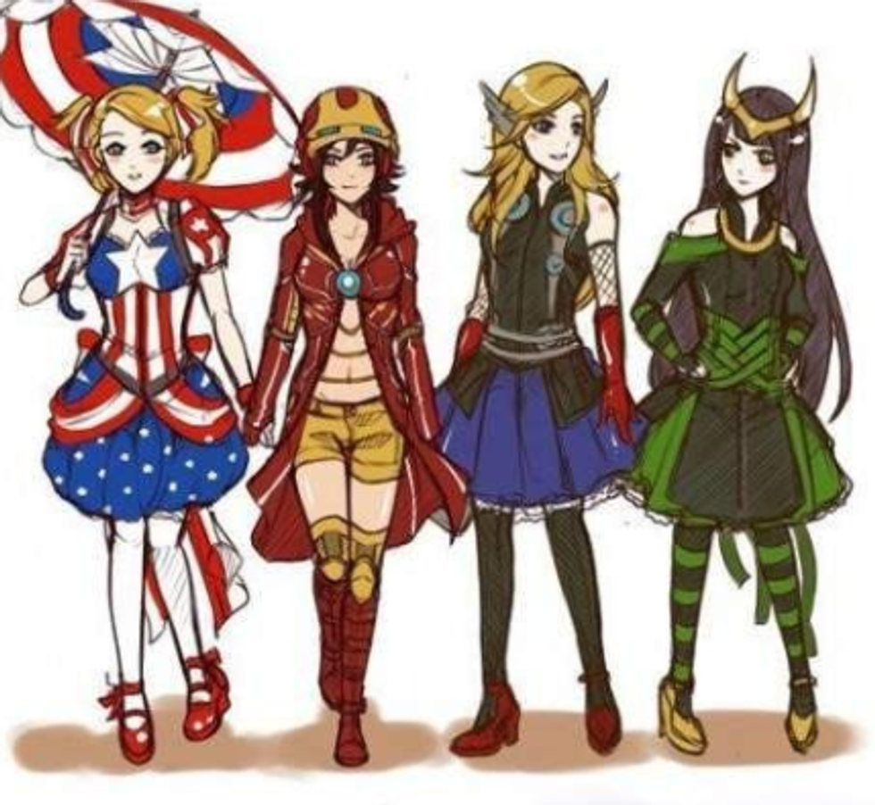 Why are they all wearing high heels and why are their costumes infinitely more revealing and why does Captain America have a parasol instead of a shield?