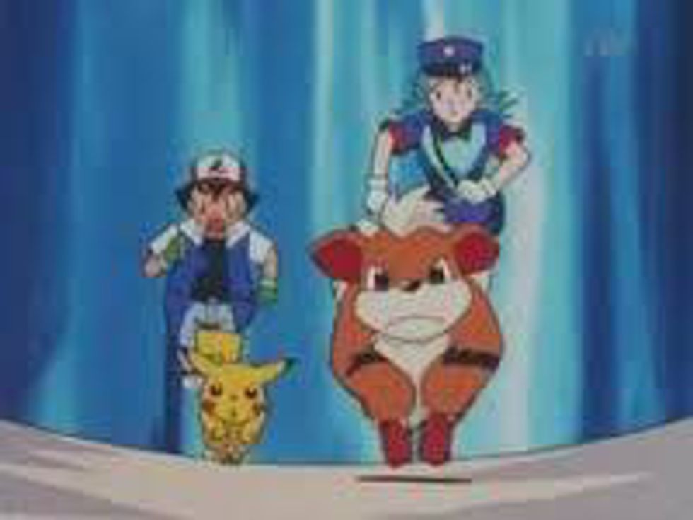 Yet another instance of where Ash just makes hasty decisions without consulting who it'll affect the most. In this case, Ash and the Gang happen upon a Growlithe police force - after Officer Jenny tells him this is exclusively a Growlithe training camp, Ash still decides that he wants Pikachu to be super strong, obedient, and powerful just like the Growlithe in the academy. Pikachu clearly doesn't want to participate and Ash only changes his mind after an admittedly touching moment where Pikachu recognizes his trainer despite Team Rocket's voice changing machine. Ash is TOO OBSESSED with power!!