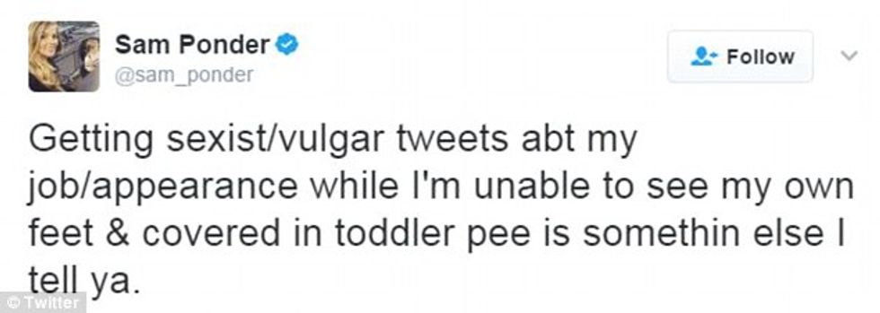 If this doesn't prove that appearance is key in this field, I do not know what does. She could not even rock her baby bump without being degraded. Also, as a college game day host, she has seen plenty of crazy game day signs. They usually say hilarious things about the other team, however, someone decided to make a sexist sign at Sam that had NOTHING to do with the game.Once again, just another example of how women are seen in a very degrading way in the sports world.