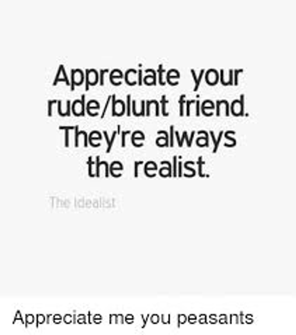 I have two words for you: brutal honesty. If you want an honest opinion about something, you can always count on this girl. She can be a little harsh sometimes, but it is only going to help you in the long run. I won't lie to you though, you guys will sometimes be at odds. Especially when she gives her opinion when you don't ask for it. You need to hear it most of the time though. She is wise beyond her years and knows what is best for you. Youcan also do a genuine happy dance when she compliments you because you know that she will not lie to spare your feelings.