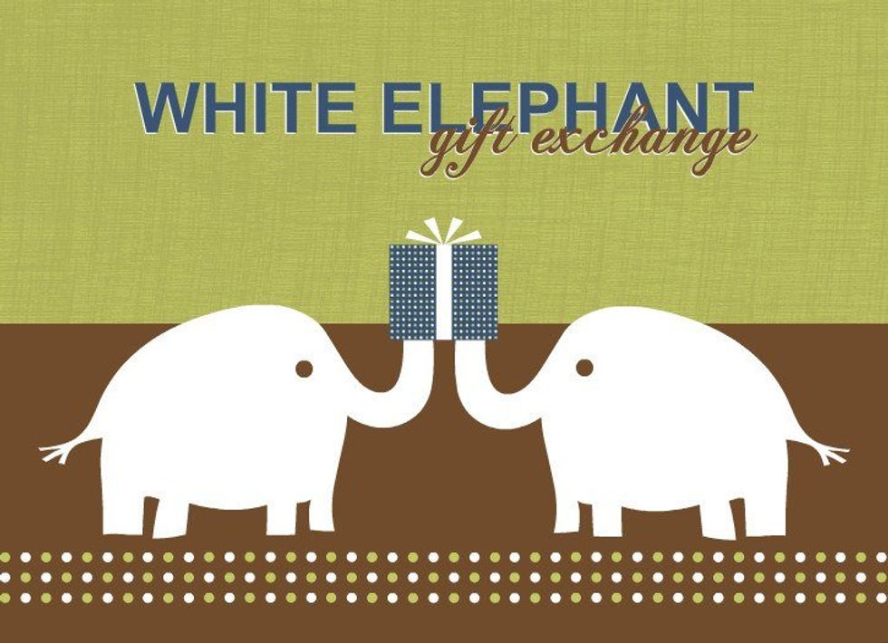 Christmas parties also generally have a big white elephant or yankee candle (only applies to the area around Massachusetts not west of Amherst) gift swap. Ah yes, the white elephant, the only competitive part of a Christmas party. If you do it right, you can make away with some pretty serious goods. If you do it wrong, you walk away with something that you will end up re-gifting or trashing.