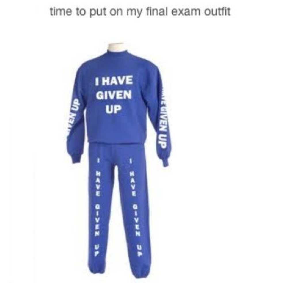 Well, we’ve made it, students of Indiana University: finals week is finally here! Fifteen weeks of projects, assignments, and lectures that seemed to last all day and night have all come down to one week filled with tests that cover things you learned in August. Needless to say, you will be pulling multiple all-nighters this week, so comfortable clothing is key. However, don’t you still want to look your best and possibly get that cutie in your Psych lecture’s number for after exam drinks at Roy’s? Have no fear, this finals week fashion guide will help you do both. Here are the essentials: