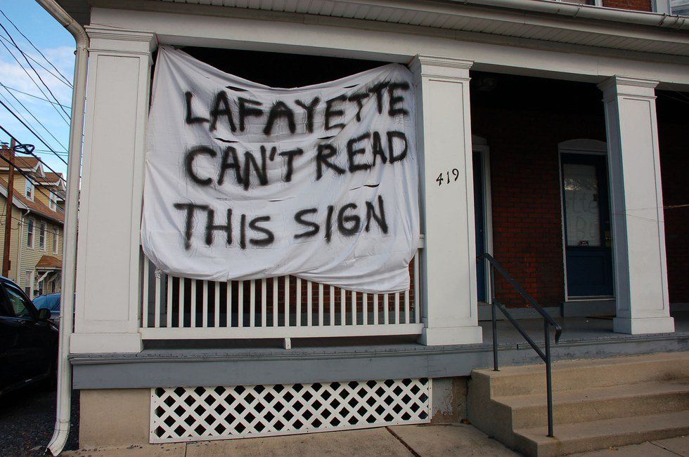 Every year, Lehigh students get together to celebrate the Lehigh-Lafayette rivalry, which is the most-played college football rivalry in the country. Leading up to this event, Lehigh students post banners outside their houses with insults such as "Lafayette killed Harambe," "Lafayette spits," or "Lafeyette pays for Tinder." Some of these signs get pretty intense. In the spirit of this week, I listed some political digs to our arch-rival: