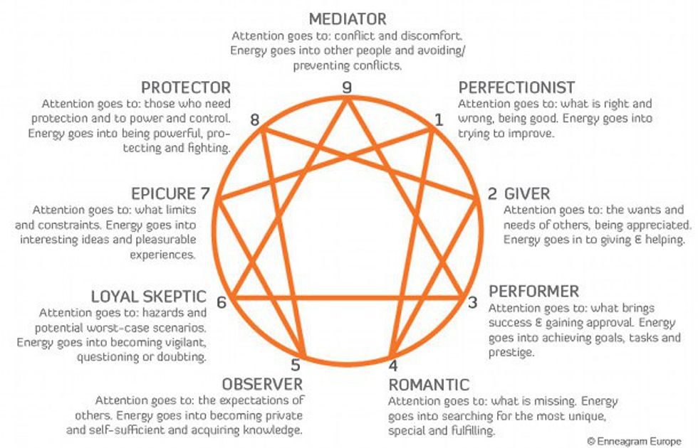Since I never really fit in the Myers-Briggs, the Enneagram really helped me actually understand myself. I am a six, which is labelled with titles such as the "Loyalist," or the "Loyal Skeptic." One of the primary characteristics of sixes is that they are “security-oriented.” This wasn’t something I really understood (and it sounds really boring), but I now am in touch with the reason why I’m sometimes overly concerned about having enough money in my savings account or having a stable social circle, or significant other. Weird sources of anxiety, anger, or sadness become parts of a larger pattern when you familiarize yourself with the Enneagram and it may help your emotional health. It may not be Buzzfeed’s quiz, “What's Your Zodiac Sign's Ice Cream Flavor?” but this may be slightly more fulfilling.