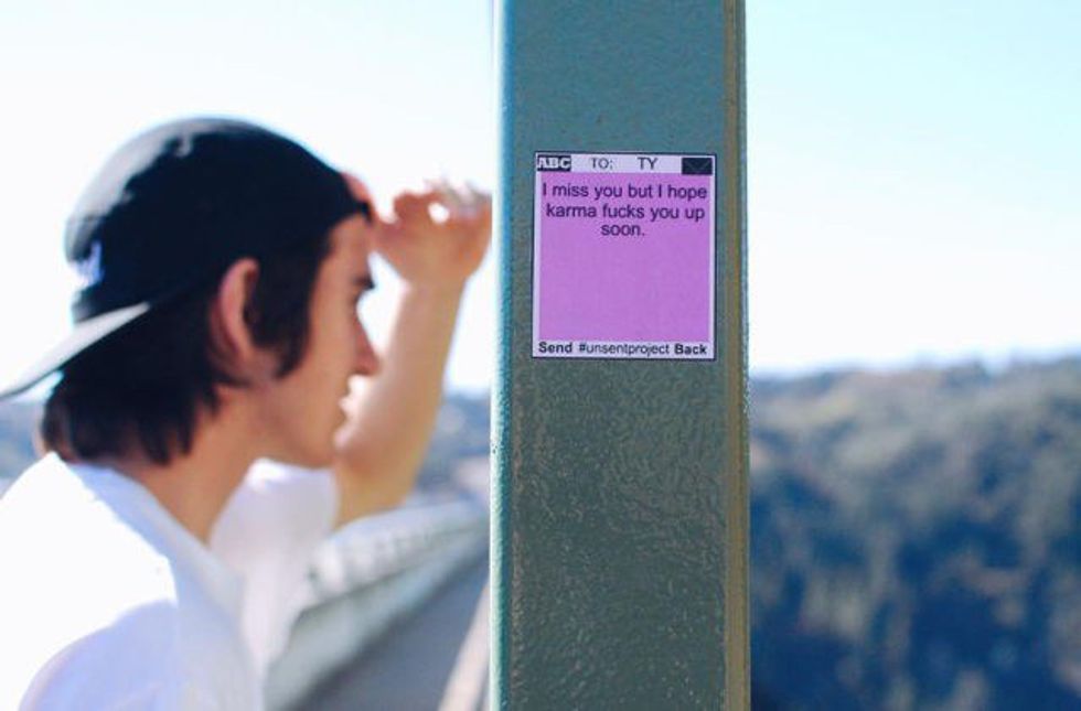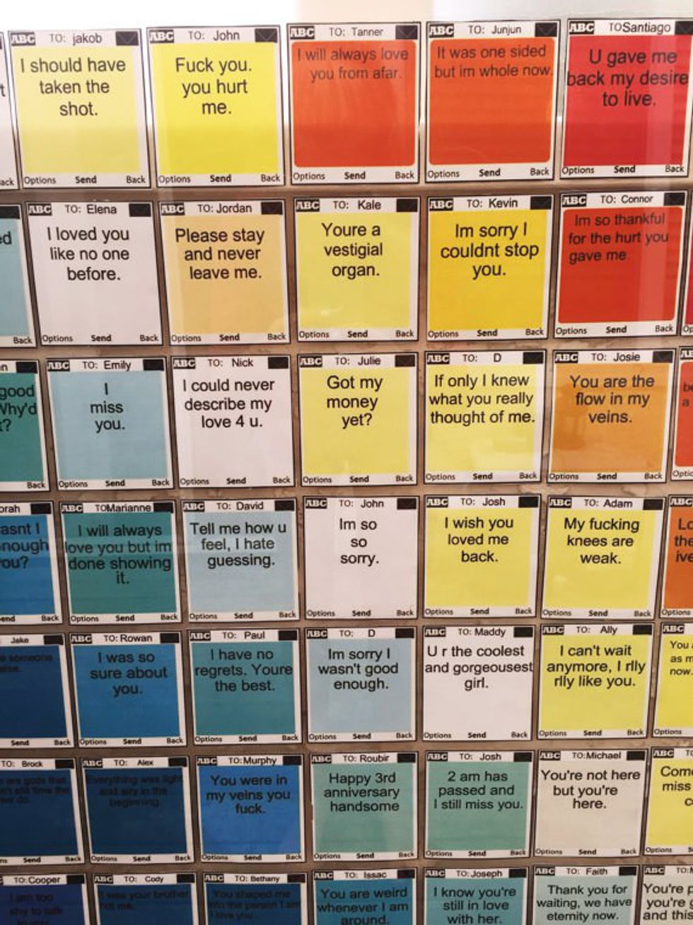 The artist and blogger received over 25,000 proposals on Instagram! Blue then created a vibrant college of selected submissions. The Unsent Project brings to light people's longing for past lovers and is “a conceptual and hypothetical release for the heartbroken soul.”