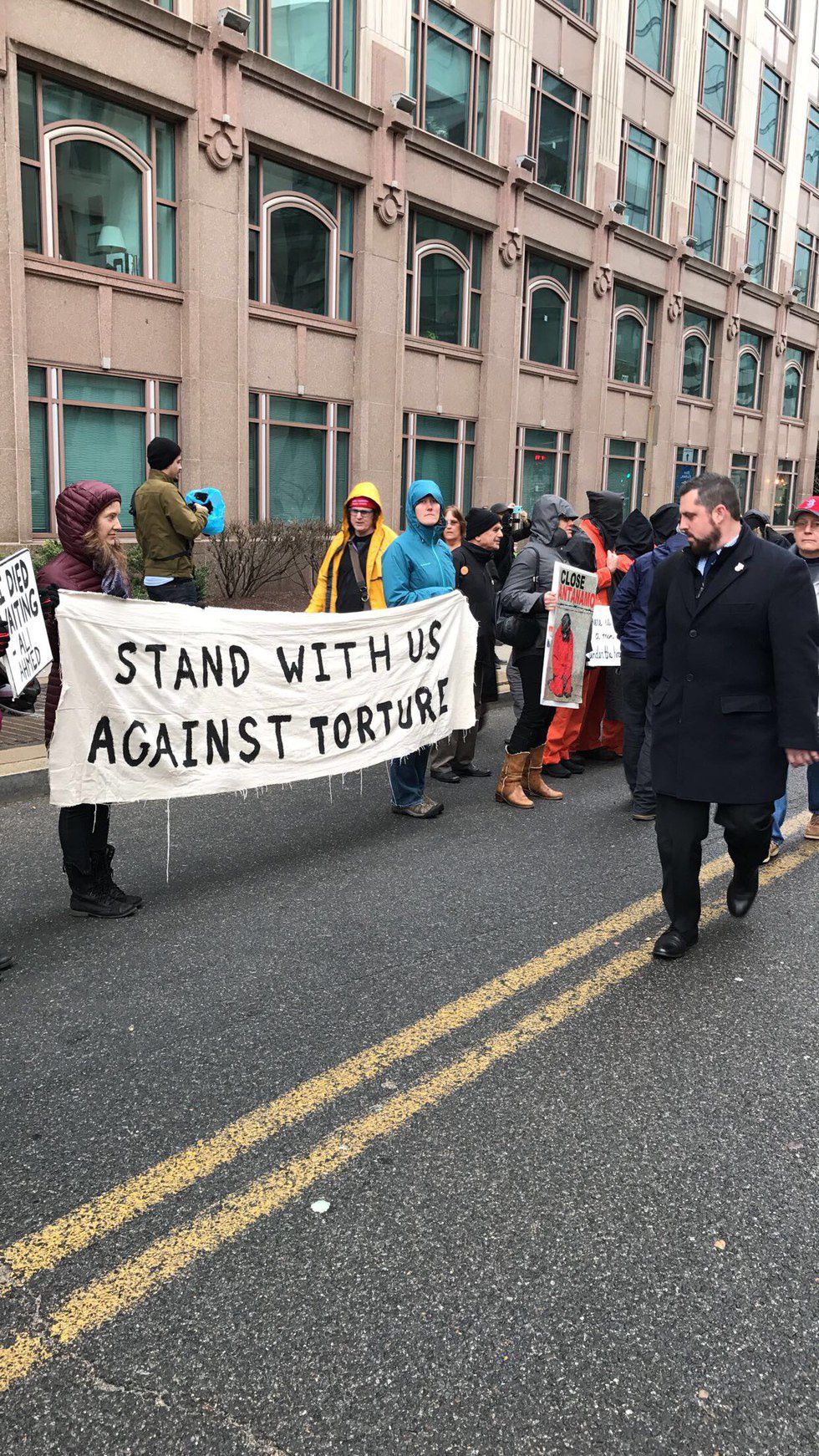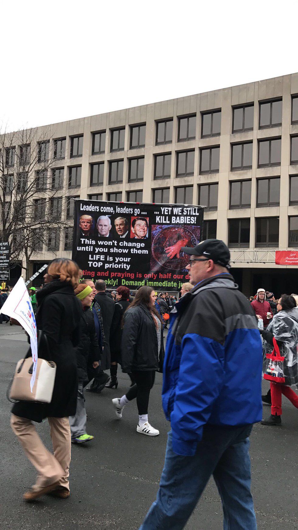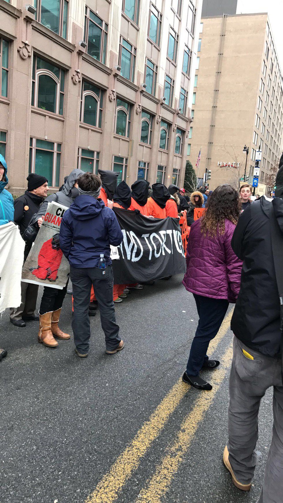 Upon arriving in D.C. at about 9 A.M. Friday, January 20th my dad and I left the metro station and followed the crowd to find our way to the line entering the main area of the event. The streets were littered with vendors trying to sell Donald Trump merchandise. One of which who yelled out, "Don't be a democrat, buy a Trump hat" which gave everyone, regardless of political opinion a good laugh. Along the way there were paths for color coded tickets. We happened to be without tickets but luckily there are several lines for other people who also don't have a ticket. Of course, we witnessed several protesters lining the streets. Some of which caught my eye more than others. Below is pictured, in this order, protests of torture, protests against abortion, and black lives matter activists.