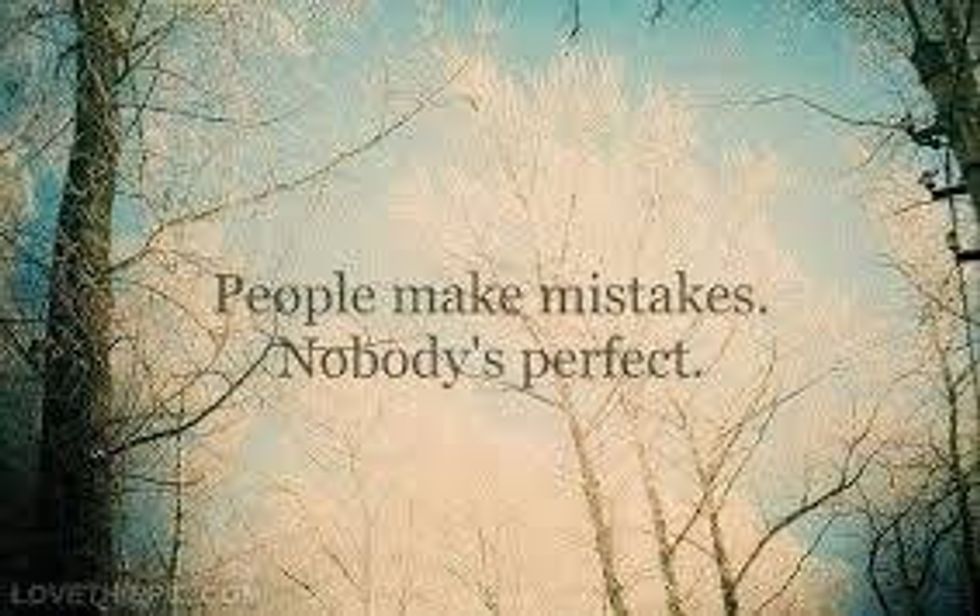 So the truth is, "Nobody's Perfect!" The word "perfect" doesn't exist in my dictionary! We all tend to wish for a "perfect" life, but in reality, life itself has ups and downs. While you wish for a wonderful life with no sadness, the truth is, while there is happiness, there is bound to be pain. And for all those people who wish they could be "perfect" like others, well let me tell you that, despite getting all the things you want, things wouldn't be the same, as there will be more flaws within you, such as having an ego. Mistakes are something that is common within all human beings, and you should understand that.