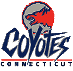 The last logo in the 1995-1996 collection is that of the Connecticut Coyotes. In two seasons, this franchise posted records of 1-11 and 2-12 for a whopping 3-23 all-time record. The play on the field matched the logo in how bad it truly was. The "Coyotes" font can represent their 2-12 season, because it came after some thing a bit worse, the Coyote itself which can represent the 1-11 season (something just a tad bit worse, even if you didn't think it was possible).