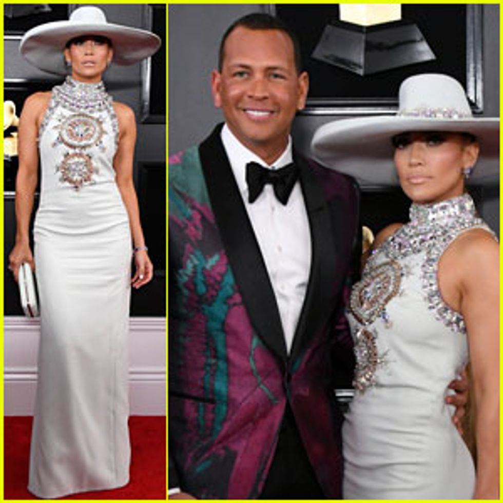 Jennifer Lopez attended the Grammy's last night in Ralph and Russo. Her dress was simple, and looked like something you could buy at a prom dress store. By far, the worst part of her outfit was the hat. Her oversized cowboy hat overpowered her look and made it seem less elegant.