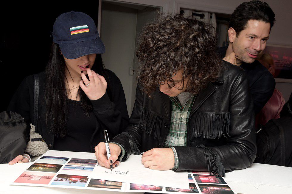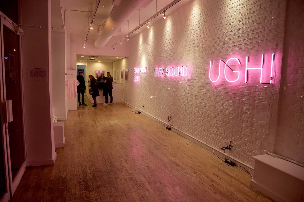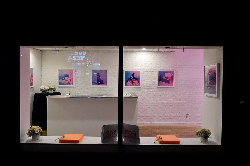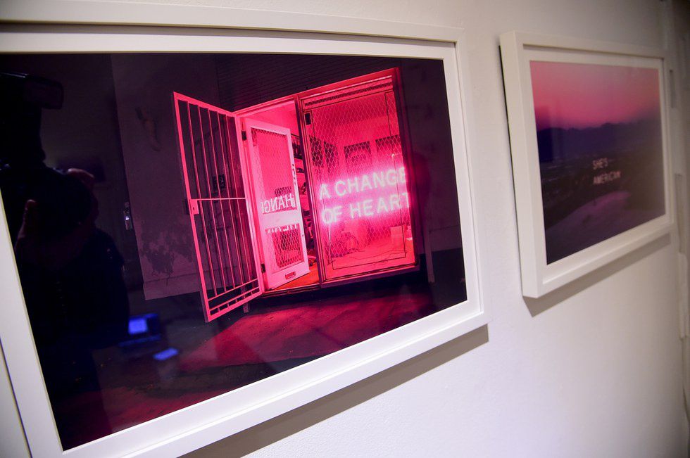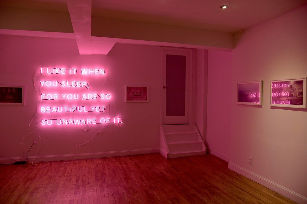 The mounted art prints featured photographs of neon signs that spelled out track names from The 1975's new album and circled around the expanse of the room in track order. The concept art for this new album release is a departure from the darker aesthetic of their self-titled, debut album “The 1975.” Showcasing deep blues, pastel pinks, and muted greens, the photographs were taken in numerous locations, from rooftops in New York City, to dreamy suburban landscapes in LA. A floor-to-ceiling neon display that spelled out the name of their new album took center stage, filling the gallery space with a rich, pink glow.