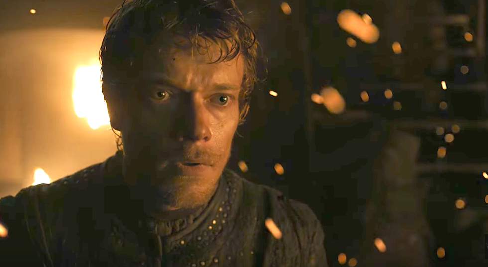 On last week’s episode of Game of Thrones, there was an epic sea battle between the Greyjoy siblings and their Uncle Euron. After eventually overpowering them, Euron held a dagger to Yara’s throat and told Theon: “Come on, you cockless coward. I have her, come and get her.” After viewing his surroundings and seeing men being tortured and killed, it was clear that Theon’s post-traumatic stress disorder (PTSD) from being tortured by Ramsay Bolton was triggered. There's no doubt that the physical and mental duress that he suffered from under Ramsay's captivity was haunting him, thus making him overcome with panic and fear. So in that moment, he did the only thing he felt like he could do: He jumped overboard.