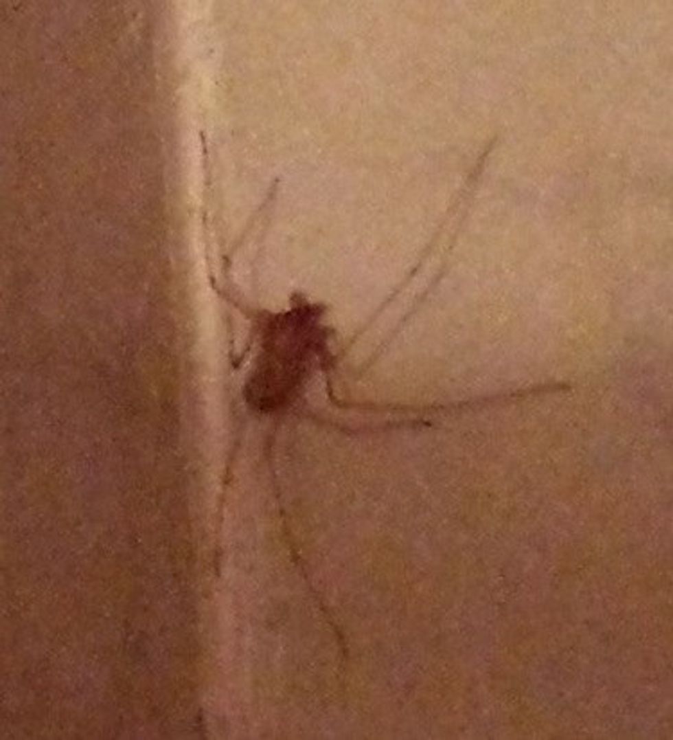 Later that day before going to sleep and failing to identify the type of spider it was, I posted a similar picture on Reddit to try to figure out if this was the kind of spider that would kill me in my sleep. Upon waking up, I was met with a comment say that it was a "spitting spider" of the Scytodes genus. Pretty much, it spits venom out of its face towards stuff to kill it. These spiders are known to hunt other spiders, such as the brown recluse. After reading this, I knew Windsor would make me proud as guardian of my bathroom.