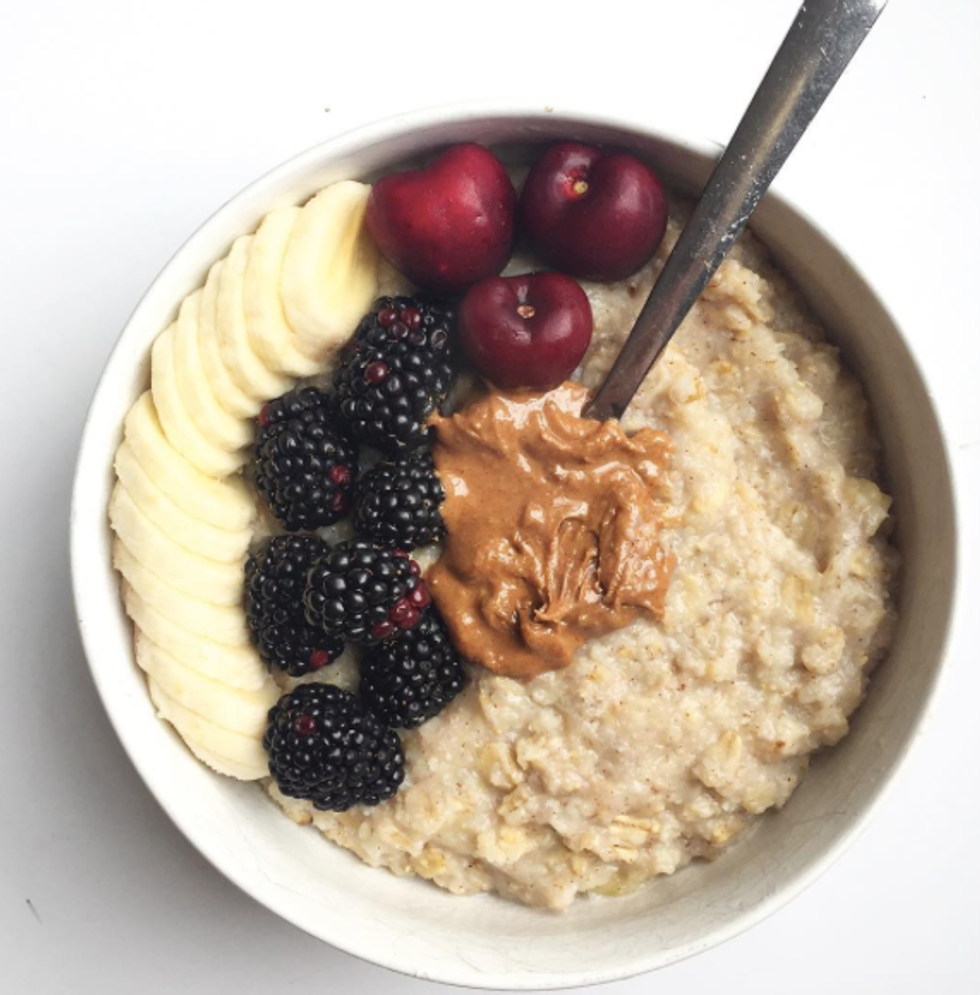 Ah, oatmeal – so many options: bananas, dates, blueberries, strawberries, cherries, almonds, pecans, maple syrup, blackberries, raspberries, pistachios, walnuts, peaches, peanut butter and jelly. The list of toppings is endless people.