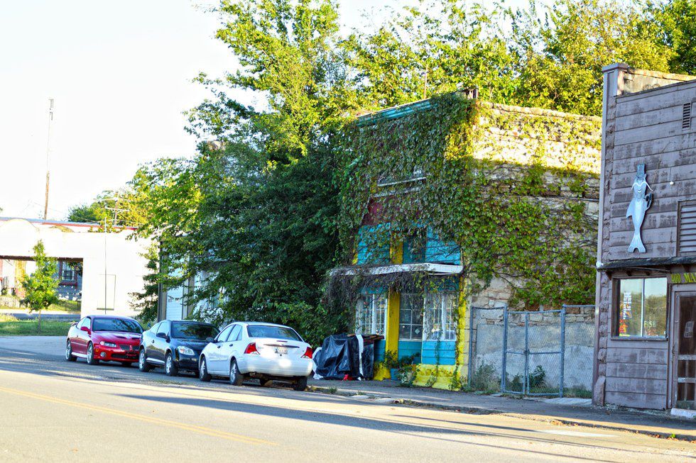 After passing by the town-marker sign, you see several buildings. The very first one on the left is a store with more uses than I can count over the years I've been alive. (Once upon a time, it was an Italian restaurant, but now, an army surplus store.) The next building is a consignment store that does fairly well.