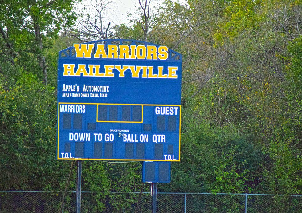 (Photo caption: Scoreboard at the football field.)