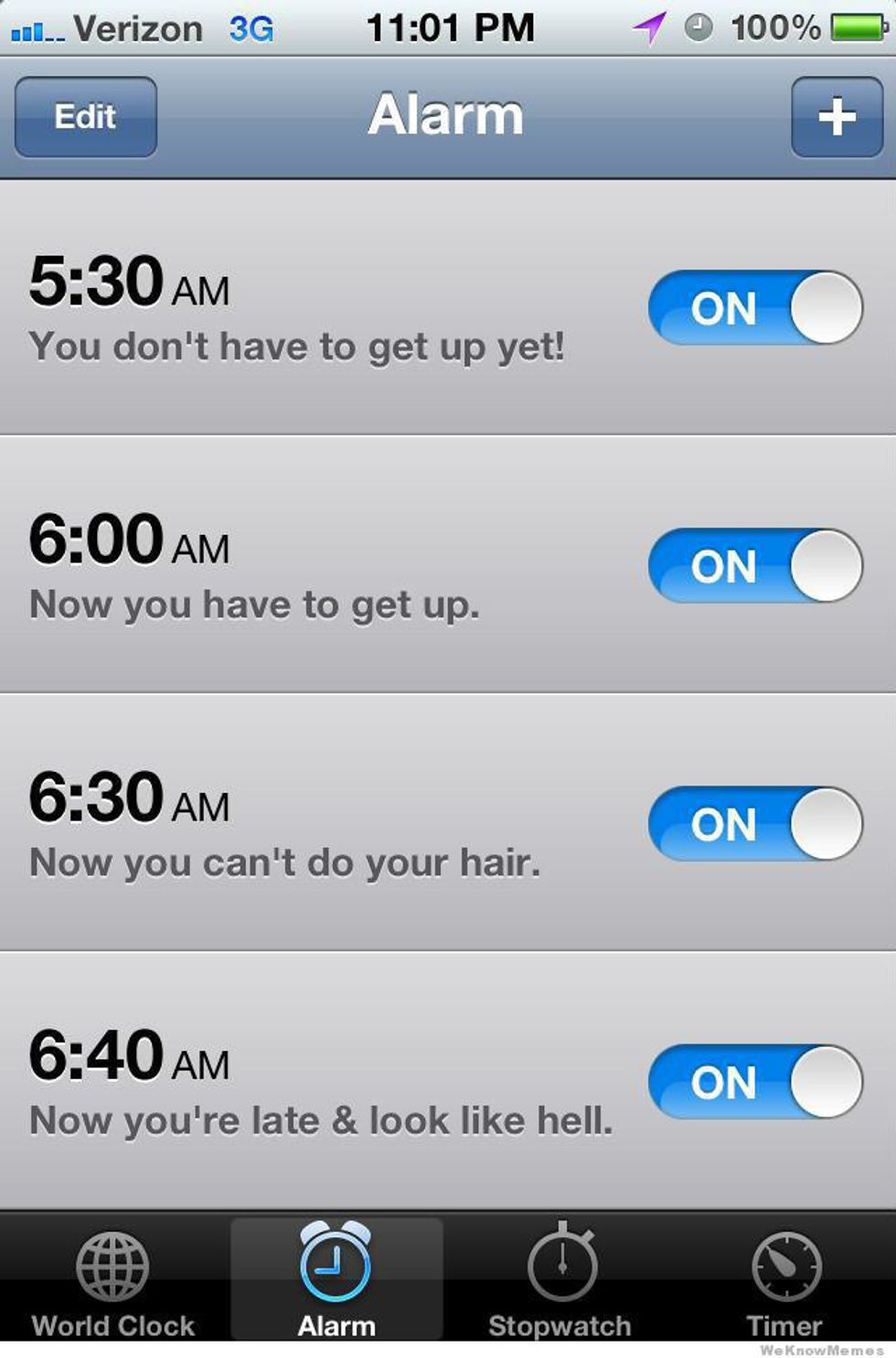 This one is 100% about knowing your self. Knowing your capabilities and your bodies need of sleep. Either you hear that alarm right away, roll over, and walk to the shower in the morning, or you know it'll take either these five plus alarms you have set or an entire body slam from someone on WWE to wake your lifeless carcass from that night's sleep.