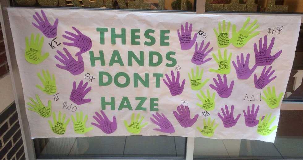 Akron got involved in National Hazing Prevention Week. UA Speaks set up “These Hands Don’t Haze” in the student union. Students could stop by and trace their hands on paper, cut them out, and write reasons why they don’t haze. Some reasons given were “These hands don’t haze because we love one another” and “These hands don’t haze because my sisters are my family and we are here to build each other up, not tear each other down.”