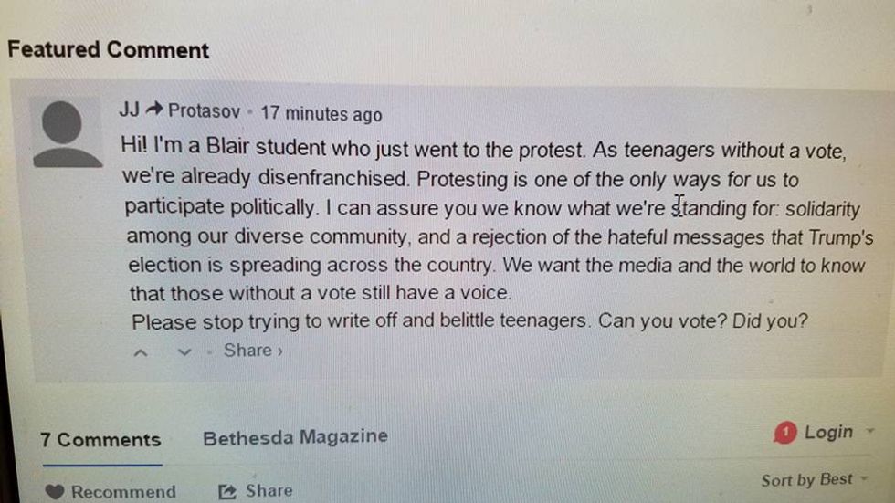 In recent days, protests have been cropping up across the country. The news of President-Elect Donald Trump taking office has spurred many men and women to take to streets to speak out. Even high schoolers have also been showing that this win is also on their minds. I was absolutely proud as I watched in my local area as one by one (my Alma Mater included) walked out during the school day. The students planned and proceeded to walk out in the middle of the school day to show they also won't allow bigotry become normalized.