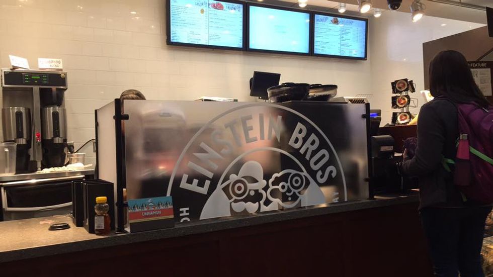 You will get burnt out on the cafeteria food before the first month is even over. You will want to use your flex dollars but trust me...they go buy quickly. One of the worst feelings is when you swipe your card at Einstein Bagels and it shows that you have $5.43 left of flex with the whole month of April left. Eating off campus once or twice a week is a good way to blow through your actual money pretty quick, too. I love Jimmy Johns, Panera Bread, and coffee from The Edge and trust me you really have to watch it or else your bank account will go as fast as your flex dollars.