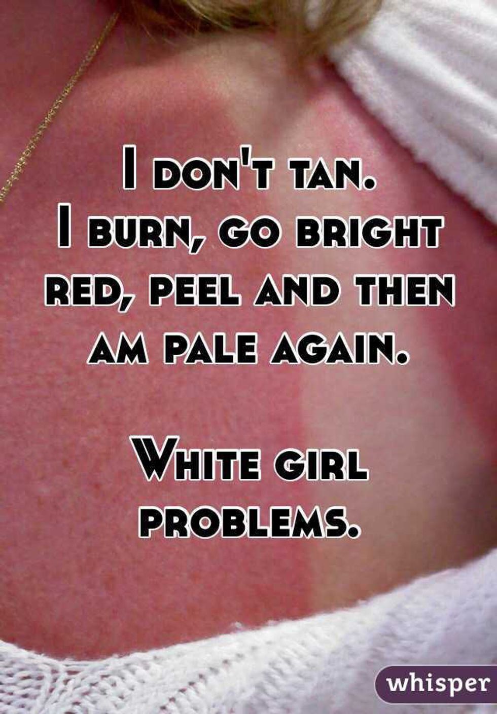 1. Noticing discoloration anywhere else because your skin is the purest white to compare to.