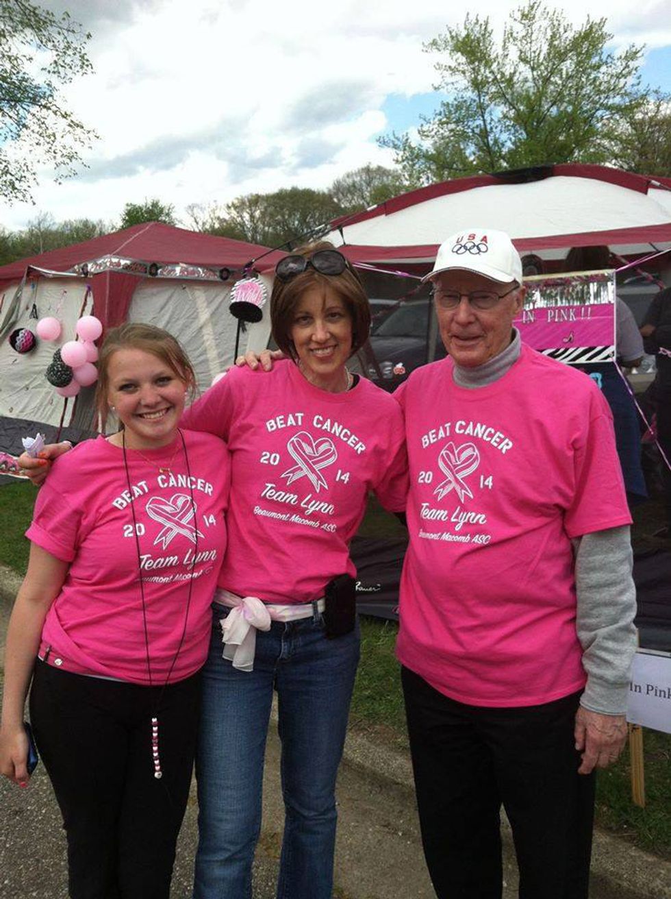 Image Caption: Me with my mom & grandpa -- both cancer survivors -- at our first Relay for Life event. My mom was just one week post-mastectomy and her hair was actually a wig thanks to the chemo