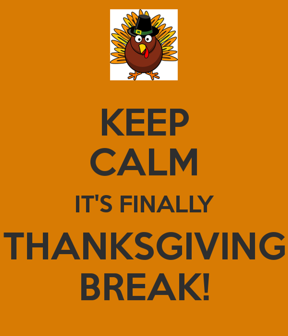 This break couldn't have come at a better time. After every single professor decided to assign four years worth of work in the past week, we're finally free to go home and relax (and do the other work that that one asshole professor assigned during break). From home cooked FREE food, to your own bed, to seeing your high school friends and family for the first time in what feels like centuries, thanksgiving break is something all college students need and are extremely thankful for.