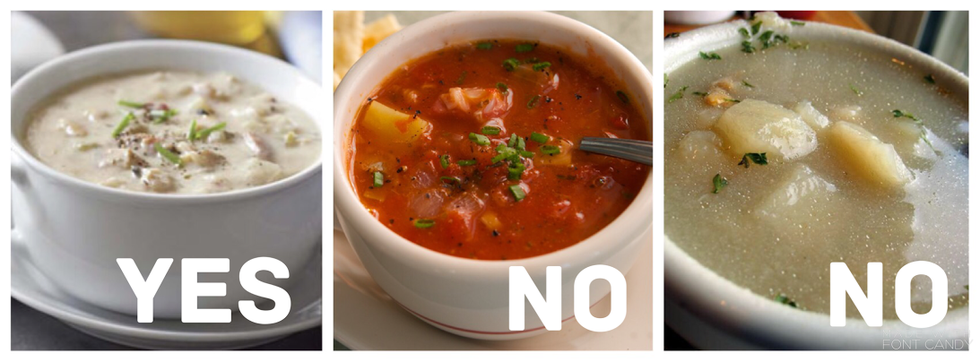 I felt personally victimized the first time I went to get a nice bowl of 'chowdah' in the URI dining hall and found a big pot of red soup. Manhattan, why do you wish to watch the world burn? I didn’t feel any better when I learned for the first time what Rhode Island Clam Chowder was. This is why the rest of the country can’t have nice things.