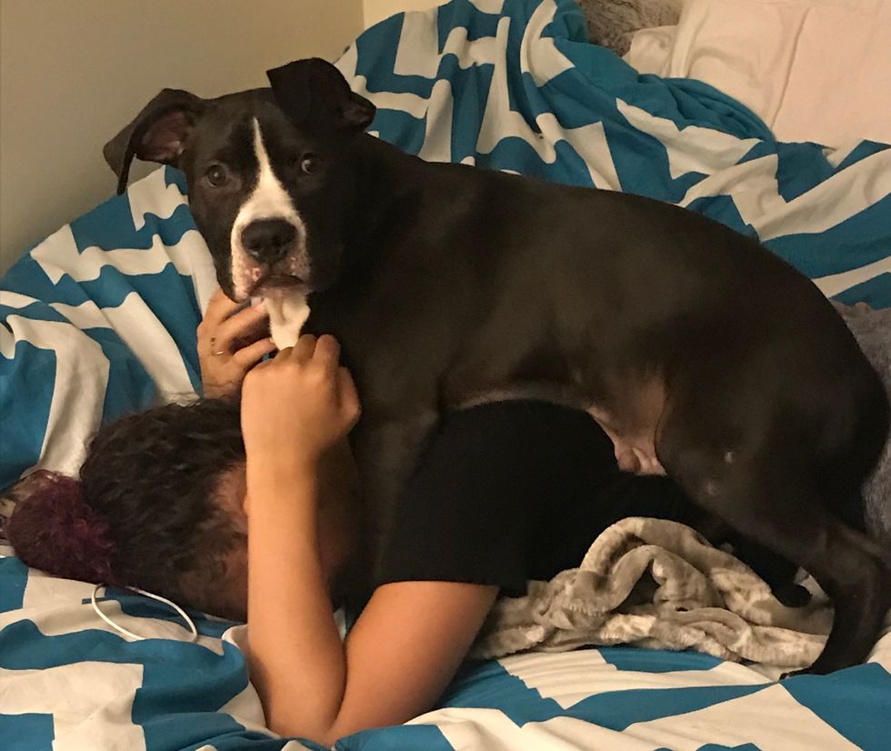 I am a dog mom to an almost one-year-old Pit Bull puppy. His name is Chance and he has been causing trouble since the day I got him. More specifically he eats everything and anything he's not supposed to. I'm convinced he's got an indestructible stomach. Chance's antics will always keep me on my toes, to say the least. Going away to school and leaving him behind is one of the oddest feelings I'm sure any pet owner in college can relate to. With the Thanksgiving season upon us, I realized how grateful I am to have such an incredible dog, no matter what kind of trouble his stomach gets him into. Find out why his nicknames include "fat boy" and "beast boy" below as you read.