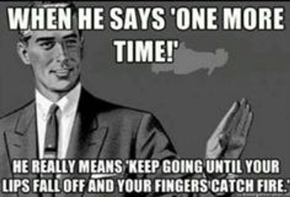 We all know that there is no such thing as "one more time." It's a ploy! Don't fall for it. If a director says these words, you may be going through the set one more time or you could be running it 15 more times. Long story short, if you hear "let's run it one more time," make it good or you'll be there for hours.