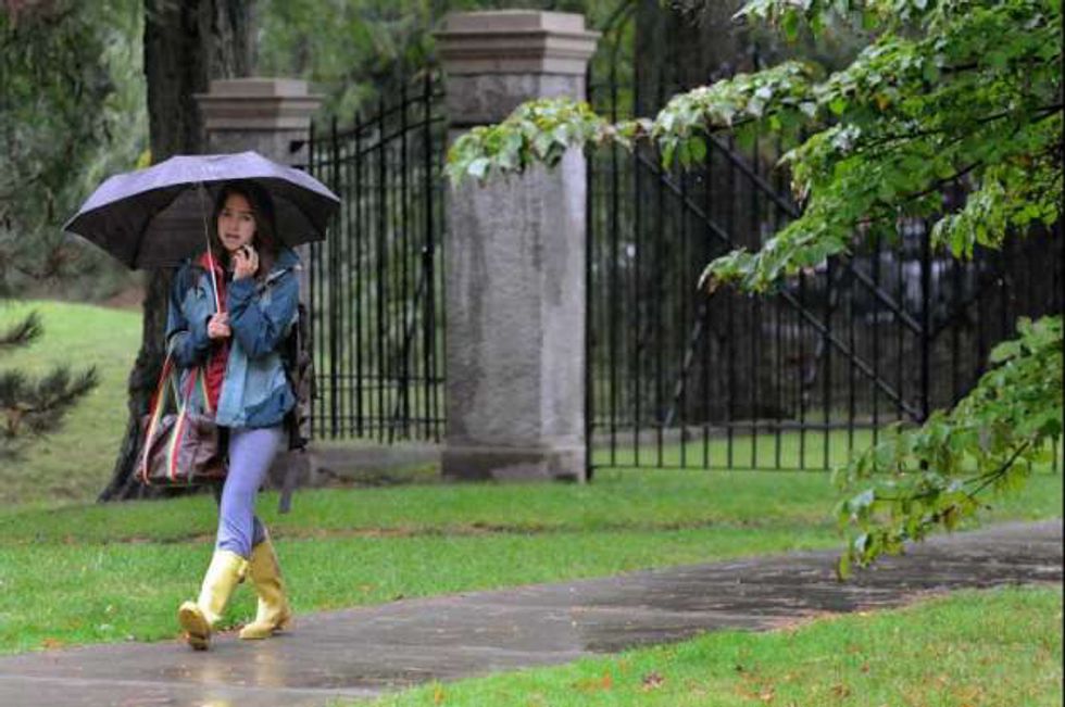 For some reason, when I first went down to campus I hadn't anticipated how much rain North-Western Iowa could get. Maybe this is because I went to high school where everything was in one building, or maybe it was because I was used to school starting after Labor Day, when the rainy season was pretty much over. As a result, I spent many a class with soggy socks and rain-streaked glasses. This can also relate to my second point: