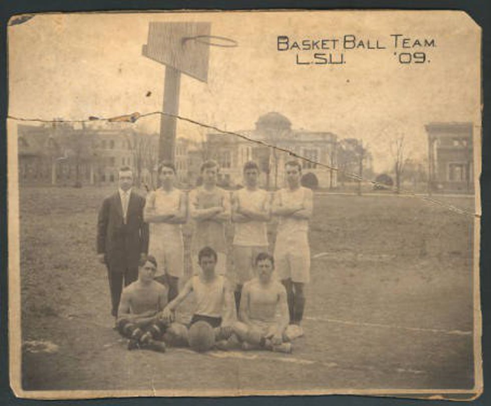 Here is the LSU Basketball Team of 1909, playing on State Field. State Field was known as the "athletic field" on the LSU downtown campus where both the football and baseball teams also played their games.