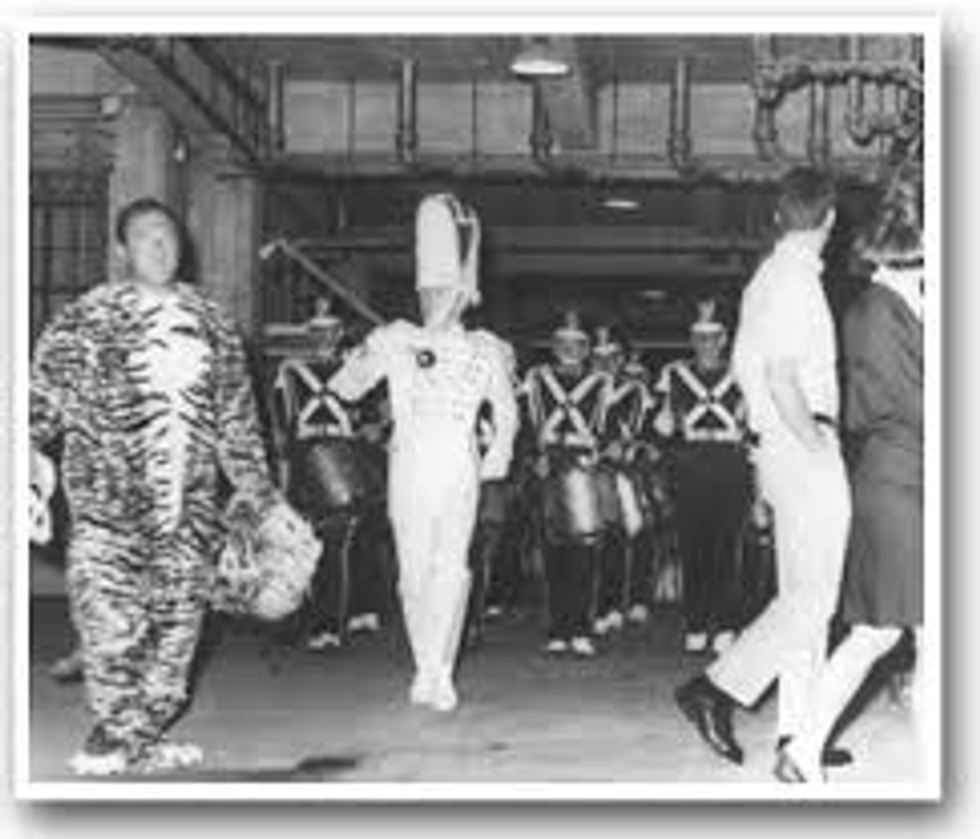 And here you are, the fierce Tigers themselves. Here is one of LSU's first football teams, in 1897. This was taken only four years after Dr. H.A. Morgan and Dr. Charles Coates (Yes, as in Coates Hall) started a football team. In Dr. Coate's opinion, the school was dull and needed some athletic competition to be brought in. He had cleats nailed onto leather shoes, and for a uniform, he went to a local costume store for ribbons to make rosettes and badges. There were only two colors left, and can you guess what they were? Yes! This is how we became the school of purple and gold. Coates is also the one who coined our mascot, calling his team, "The Louisiana Tigers". Describing that first season, he said, "Our team didn't compare with present-day teams, in skill, in ability, or power. But we had a pretty good time and if there was any professionalism involved I never heard of it."