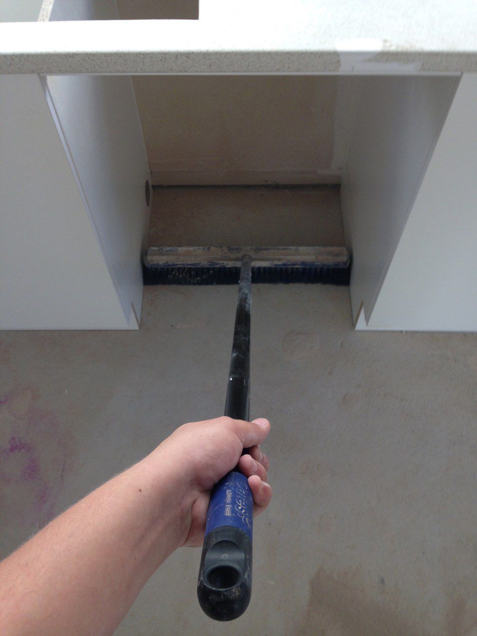 11. The odd satisfaction of this broom fitting perfectly in this small space.