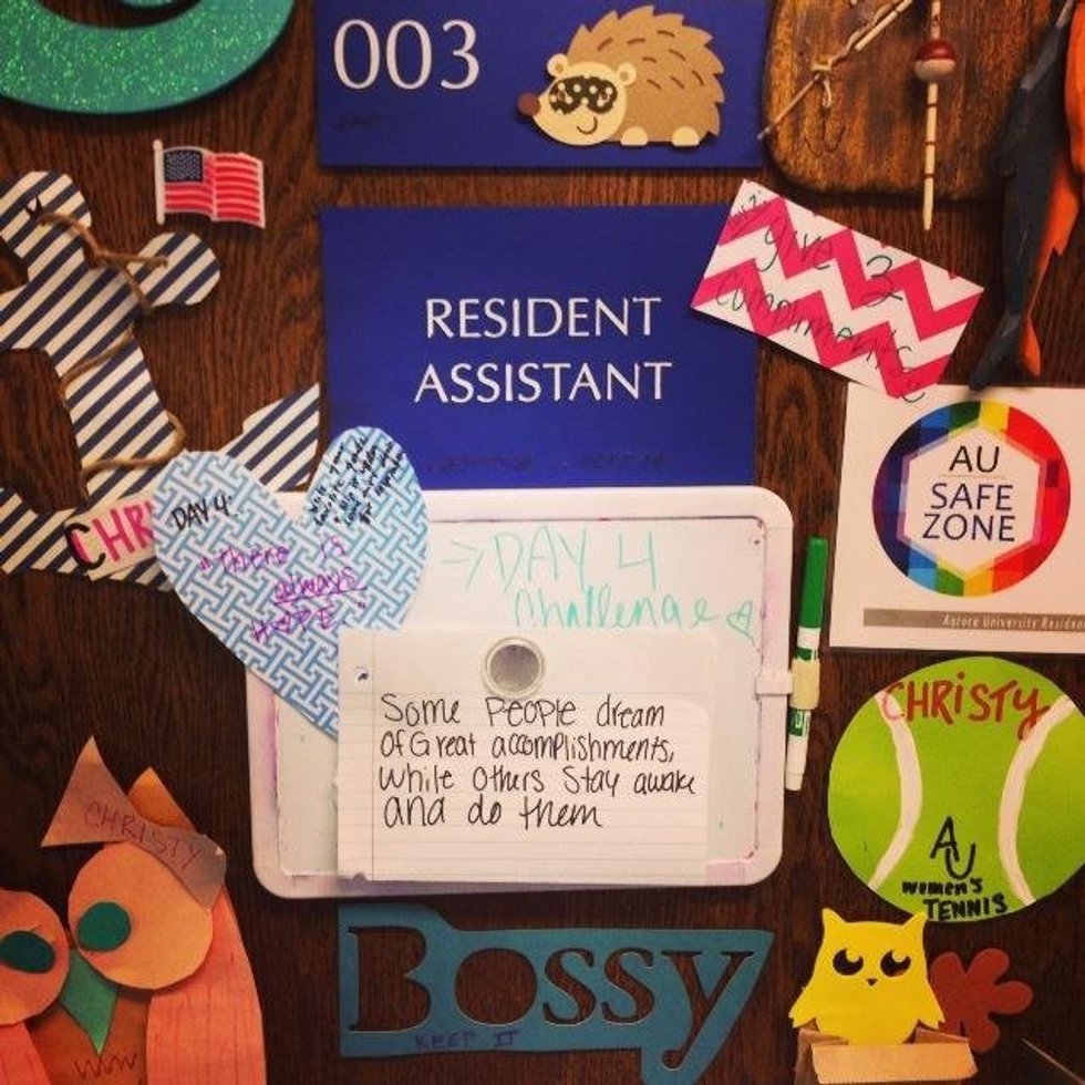 Giving your RA some lovin' could go a long way. It gets easy to assume they're just there to be there, but try using them as a resource and being there for them in return. Find out things you have in common with them or even learn about their major. This could help you A TON in the long run. If being an RA seems like something you would want to do, CHECK IT OUT! I promise, it is the most stressful, wonderful and rewarding decision one could make.