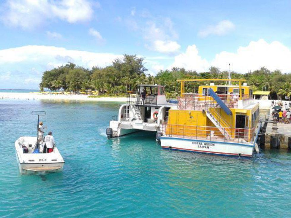 Riding a boat to go to Managaha, a smaller island off the coast of Saipan