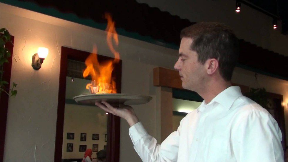 During a celebration, like a wedding, the Greek's will break a dish and yell “Opa!” The movie had it down. We also yell "Opa!" when lighting a certain type of Greek food on fire.