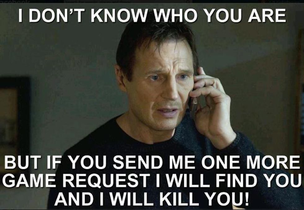 I think the meme speaks for itself, but we all know that feeling. It's 2016, if you are still playing Farmville, get off Facebook. I don't know if any of you play Facebook games, but I want to know, does anybody ever respond to those? Like, I'm pretty sure if you murdered somebody, the best place to hide the evidence is in a game request.