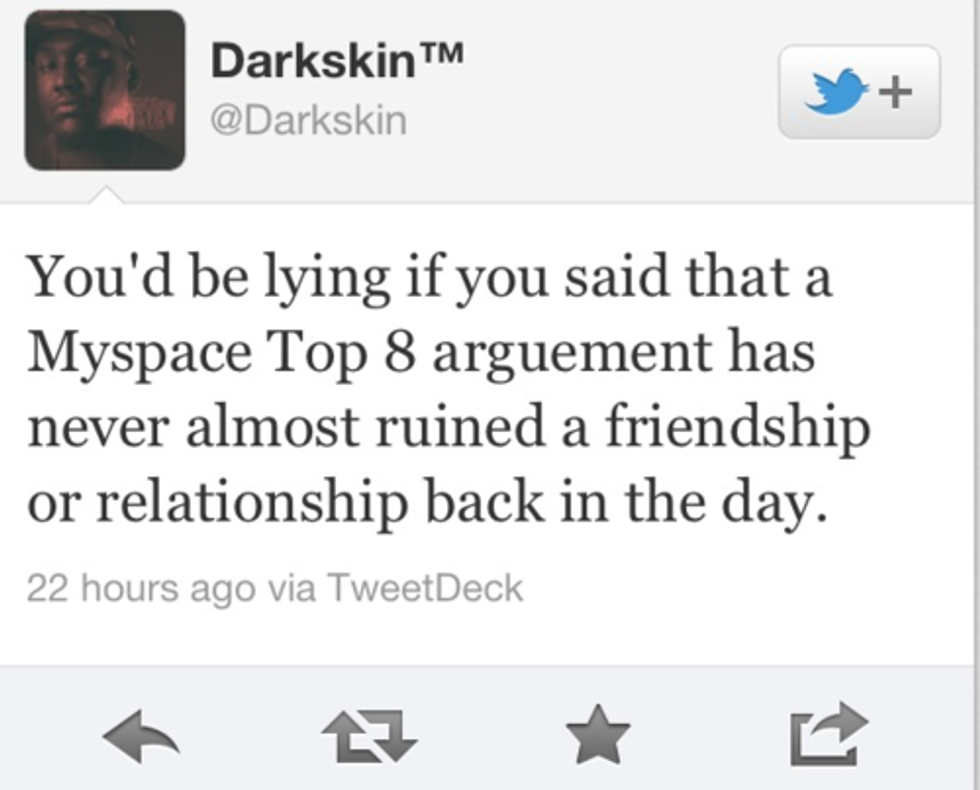 These were your clique, your top dogs, the Gretchen Wieners and Karen Smiths of the time. This was how you knew it was real. If you didn’t make the cut for whatever reason, there would surely be drama. Order was always important as well. Eventually, as Myspace updated more and more, the Top 8 feature eventually became the Top 40, so all the juicy beef you had was laid to rest as everyone was able to make it.