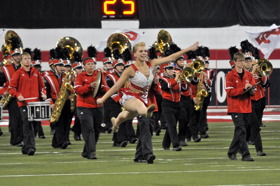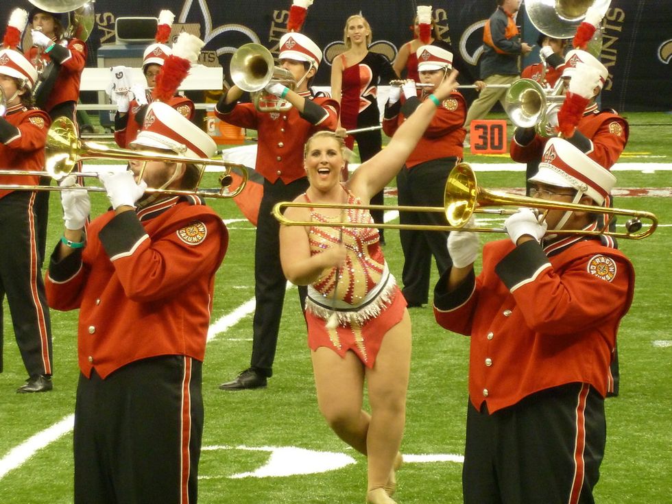 The marching band at any school is very literally, the voice of the university. They provide tons of energy on game day and are the players of the fight songs and Alma Maters everywhere. It is no exaggeration to say that the college game day experience would be drastically different (and more boring) without marching bands present. But even though twirlers do not contribute to the overall sound of the band, they do add an awesome visual element to bands. As a college twirler, I can say that I am proud to be a part of the tradition that my band brings to the field every Game Day!