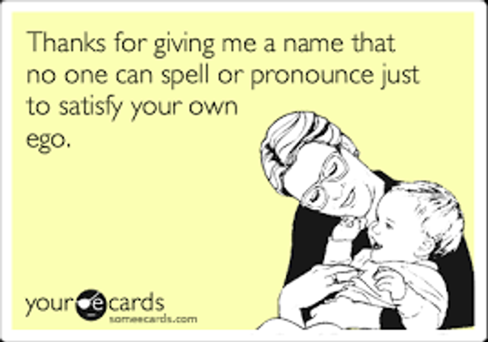 Your birthday cards and Christmas presents no longer include names because they do not want to risk spelling your name wrong. Your cousins and siblings have taken a hit by this one because everyone ends up with the wrong presents to avoid spelling one name wrong.