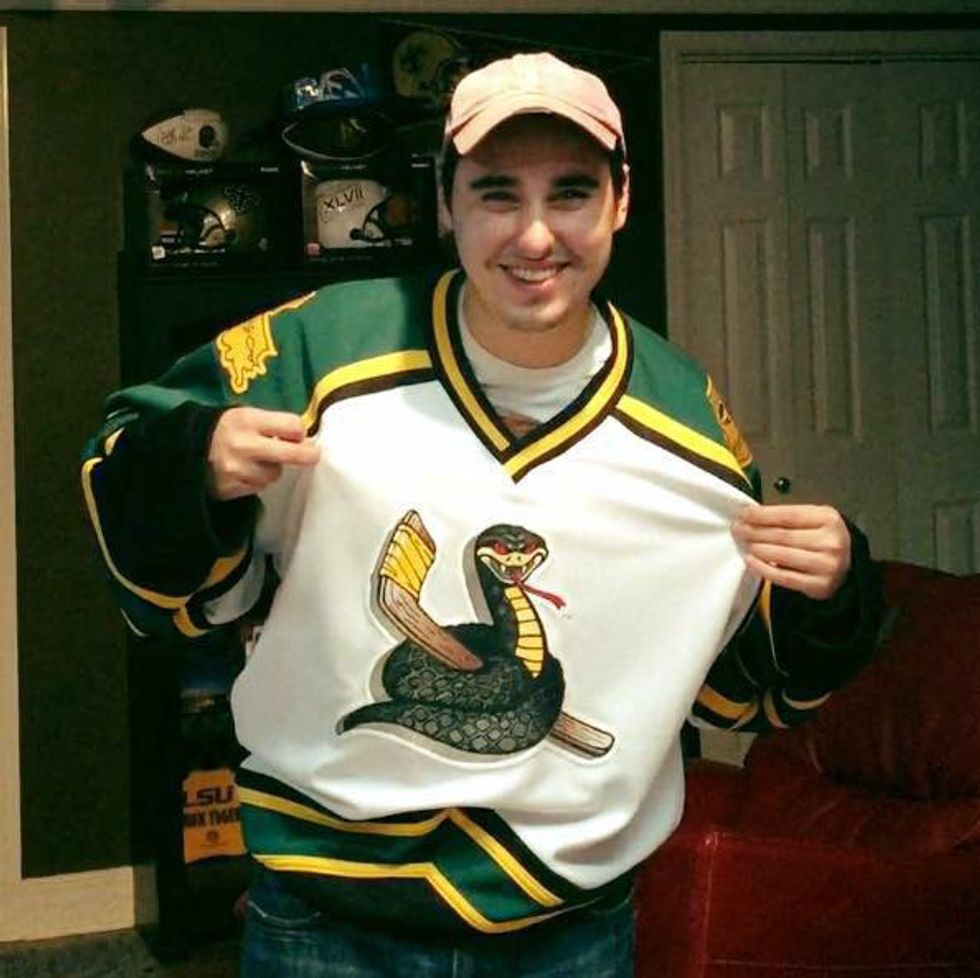 Y'all, this is so throwback, I saw a jersey in an ANTIQUE shop a few months ago! For those of you who aren't familiar with our once home team, "The Monroe Moccasins were a professional ice hockey team that played in the Western Professional Hockey League. Based in Monroe, Louisiana from 1997 until the end of the 2001 season, the team played its home games at the Monroe Civic Center" (Wikipedia). My memories of this are small because, well, I was 3 years old and hooked on the famous purple dinosaur at this era, but through pre-k & early elementary school I remember kids discussing the games and talking about how they enjoyed getting to catch plastic snakes and then eat at Johnny's pizza afterwards or how awesome in general it was that Monroe had a hockey team! I also recall my older sister going to a few games with our cousin and Papaw. It was an awesome local attraction that I wish we could still have obtained, but who knows? Maybe one day they'll make a comeback!