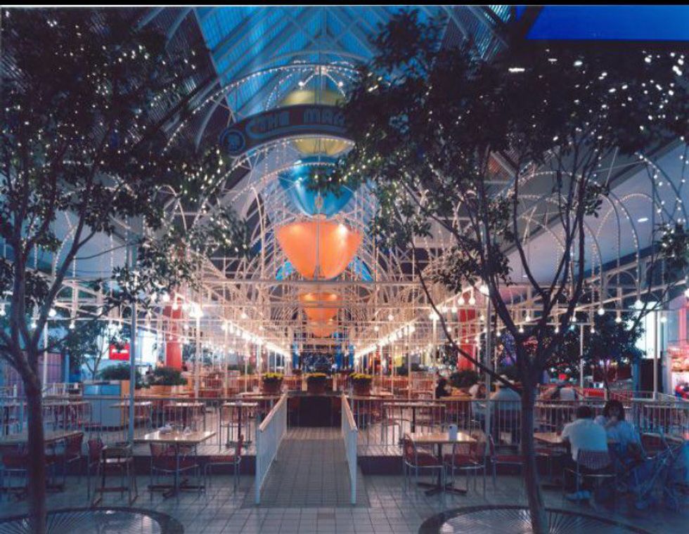 Okay. Sure, the modern Asian architecture-inspired theme we have going now is kinda cool but I really miss the old design. The old one featured a fountain in the middle that I recall throwing pennies in for "good luck." We had a McDonald's, a Taco Bell, the Yummy Japan, Chick-fil-a, Corn dog 7, Great American Cookie and that may have been it, but most importantly, we had THE CEILING UMBRELLAS. I can see some of y'all laughing at this, but for kids this was so incredible to look up and stare at; they even had lights attached making them seem dreamy almost.