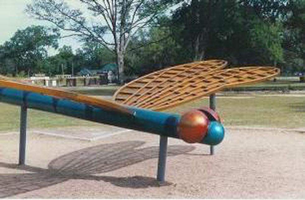 After doing some research I also learned that this was actually an interactive-sculpture that was constructed by the same artist who did the metal flowers and nature-like scenes in downtown Monroe and west Monroe-antique alley! The dragonfly was my and almost every other kid's favorite thing about Forsythe Park; I can remember being so small I had to have help to climb on it.