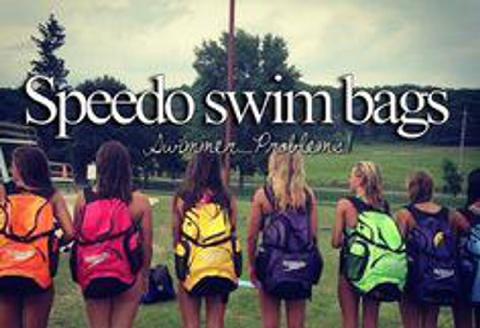 I would be lost without my Speedo bag! It is used for everything from practices and meets, to sleepovers and textbooks. Because of this, there's also no telling what you will find in one of these. It may be an innocent pencil or last week's dry land socks, the risk is yours to take...