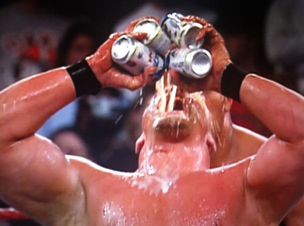 I didn't learn my drinking habits from pledging, I learned from the master himself, Stone Cold Steve Austin. Heh, you can chug two beers at one time? Puhhhleeeze rookie. After years of practice chugging Mountain Dews like the Texas Rattlesnake, I finally put my lifelong skill to good use once I hit college, and I've never looked back since. If you want to start feeling the effects of your drunken stupor at 1 a.m., then go ahead, keep drinking your beers one by one.