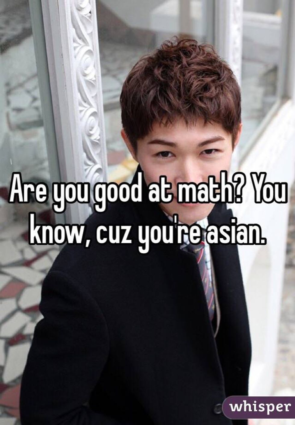 Yes and no. I’ve never taken ANY AP math courses, calculus, or scored 100 on every single math test in my life. But, even if I am good at math, it’s not because I’m Asian. There are plenty of other non-Asians that are good at math. I’m actually good in History.