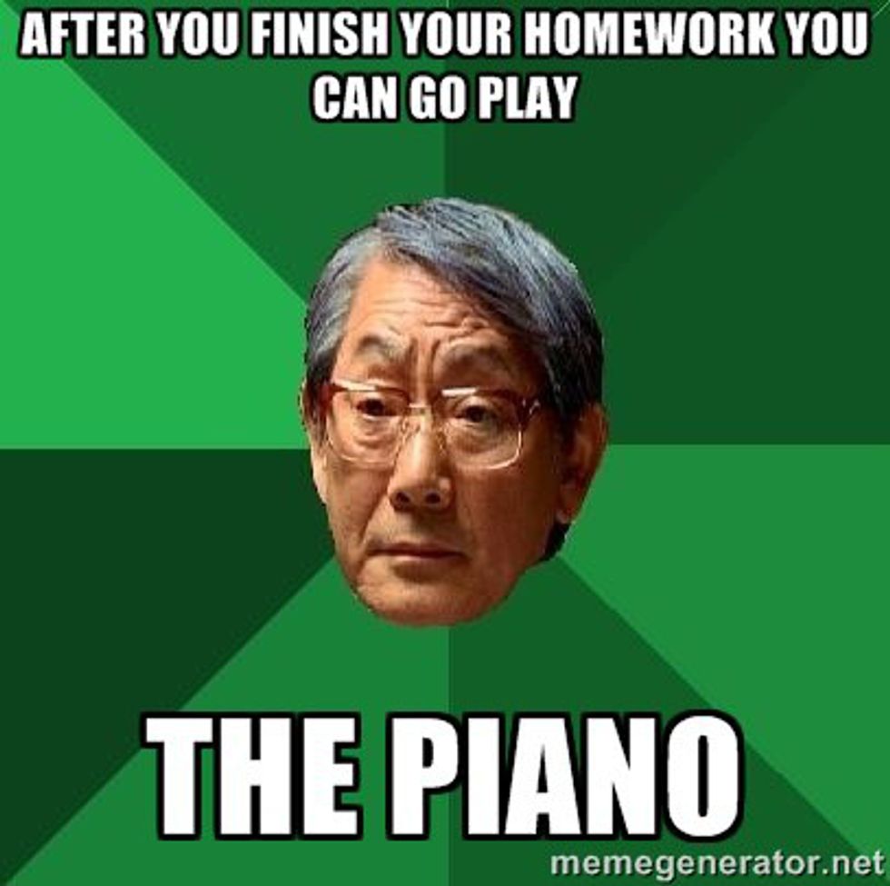 No, I cannot play the piano. I can’t read notes either. The only thing I ever really knew how to play was the recorder in the third grade. "Mary Had A Little Lamb" and "Hot Cross Buns" were my jam. Some Asian cultures look at playing instruments as a must. Back in the ancient times, playing an instrument were for the “rich” or for higher statues because they were able to afford it. Also, when Asian immigrants came to the U.S, families that had a piano in their house were considered an “upstanding citizen.” It was a sign of good social standing. But it is not limited to playing the piano, it's also any other “luxury” instrument. My parents did want me to learn but I was too shy so I never played the piano.