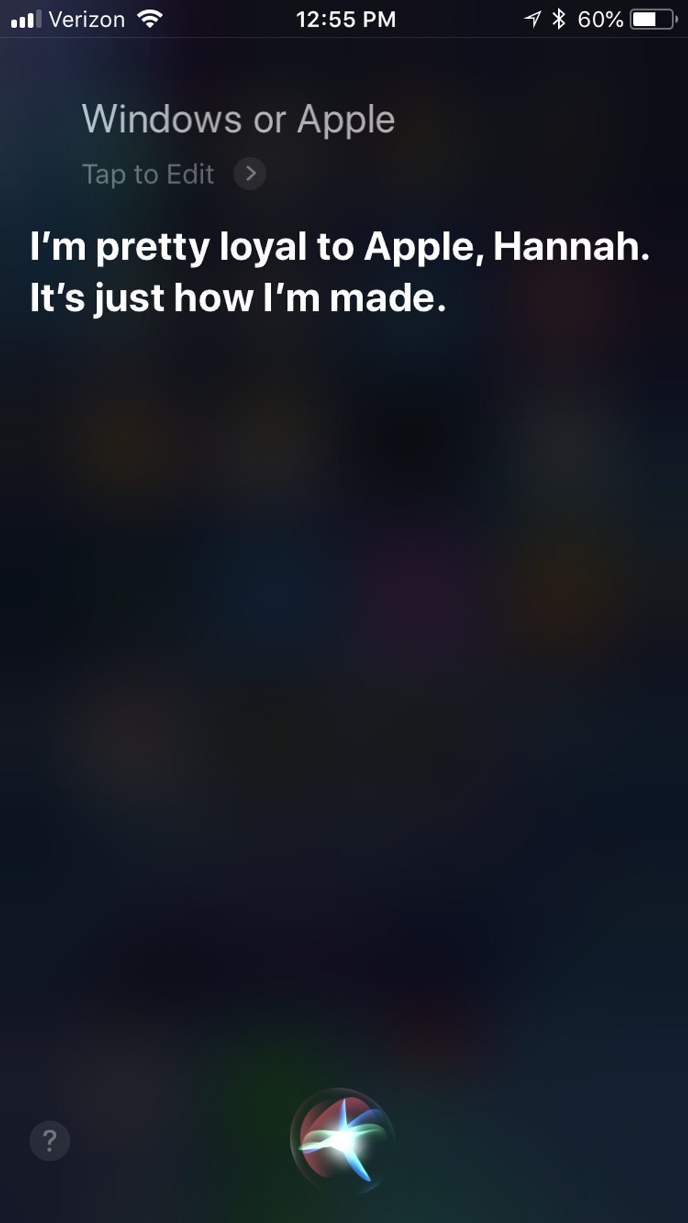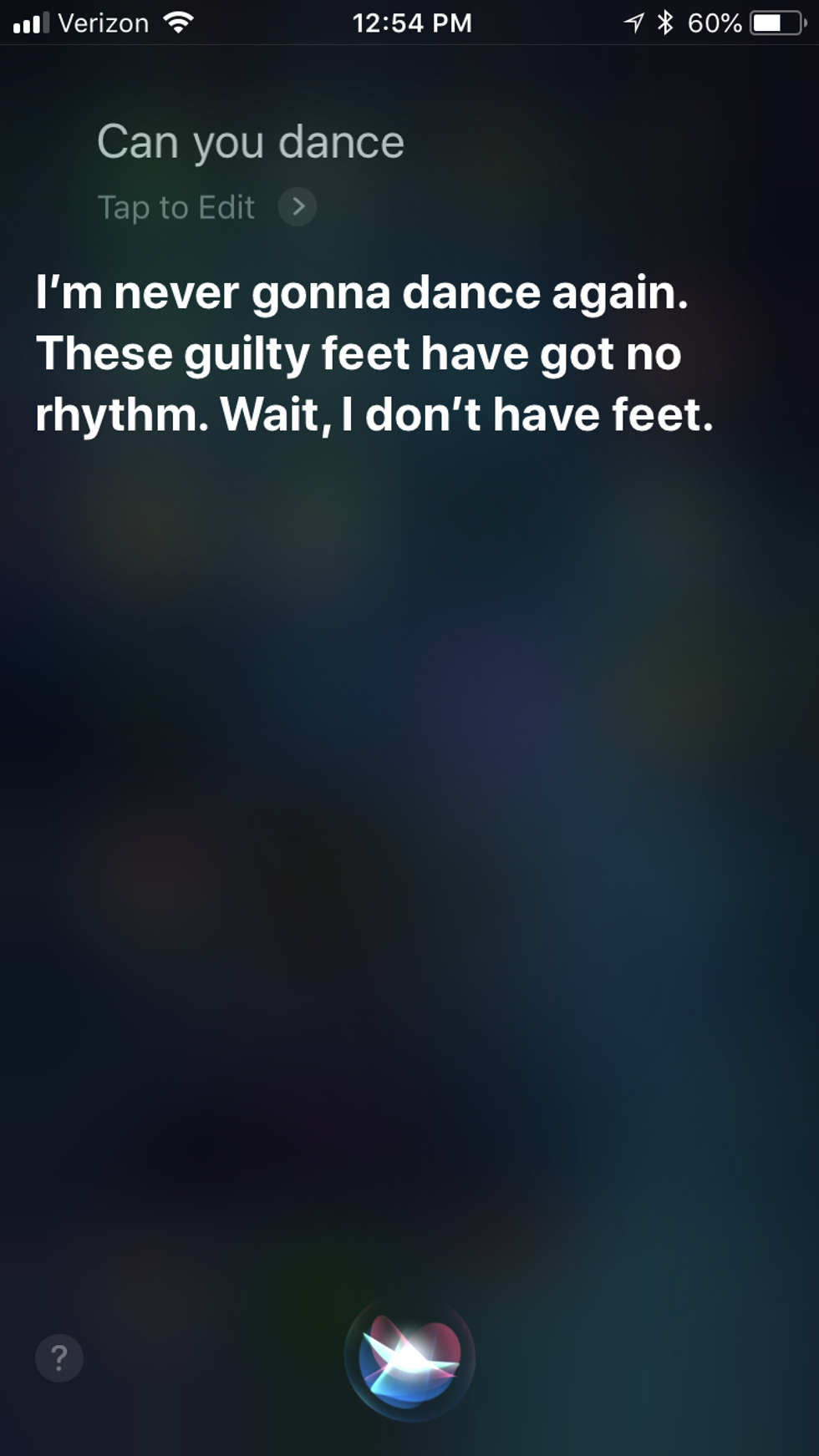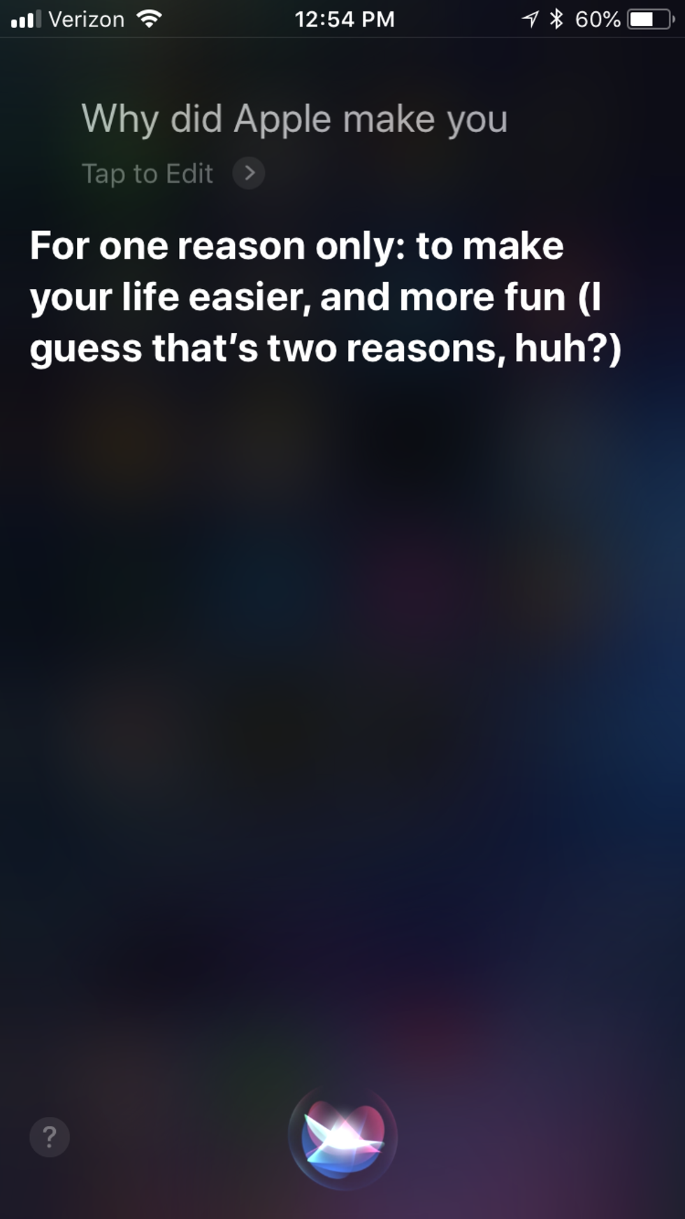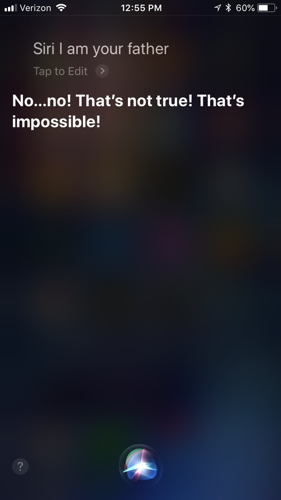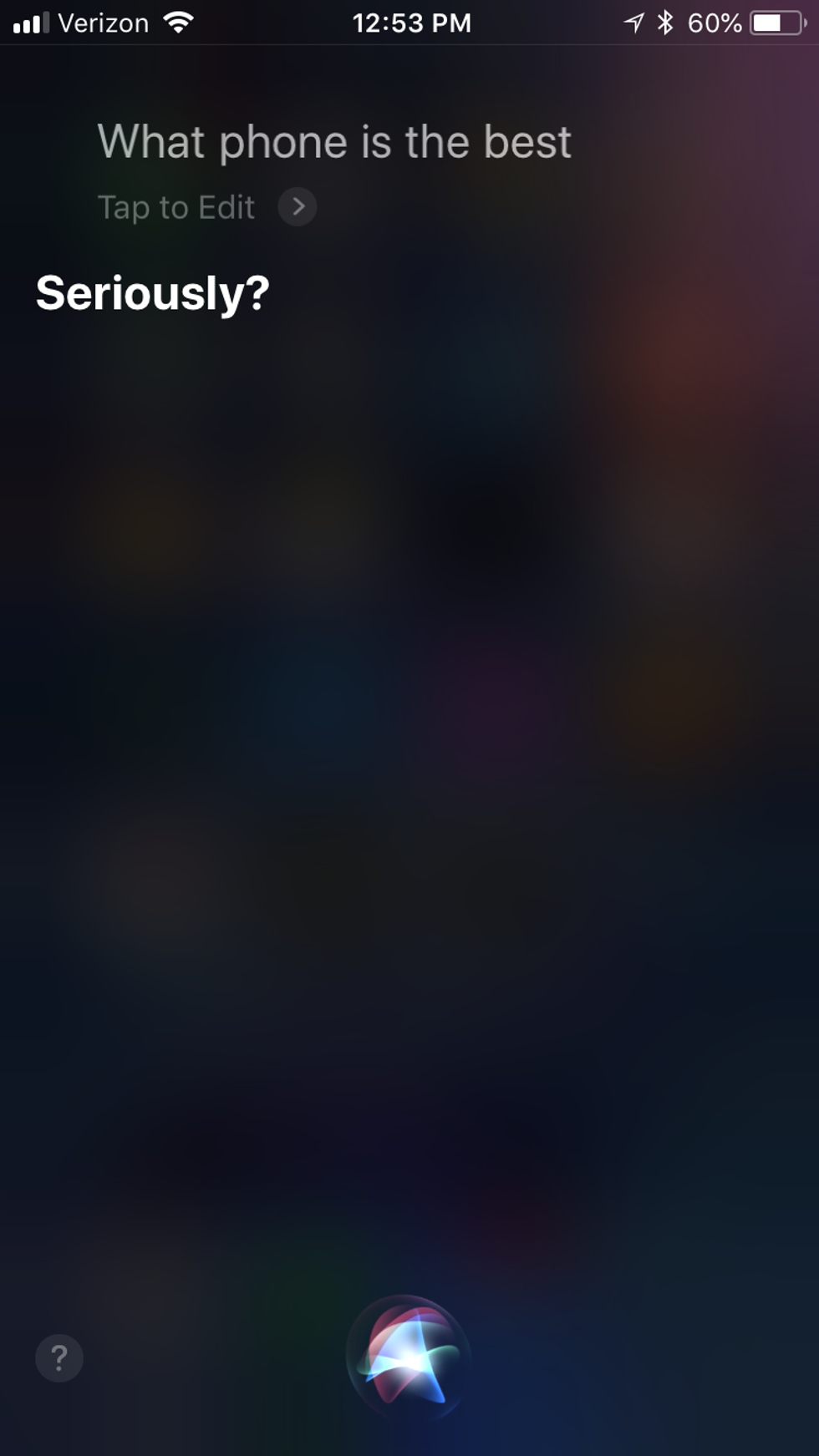 Siri is probably my most favorite thing about owning an iPhone. I'm sure these questions can be used on the Android version. I was pleasantly surprised at some of the responses I got today. I made it to where my Siri is a British man and it's awesome. Here are some of the responses I got when I interrogated Siri.